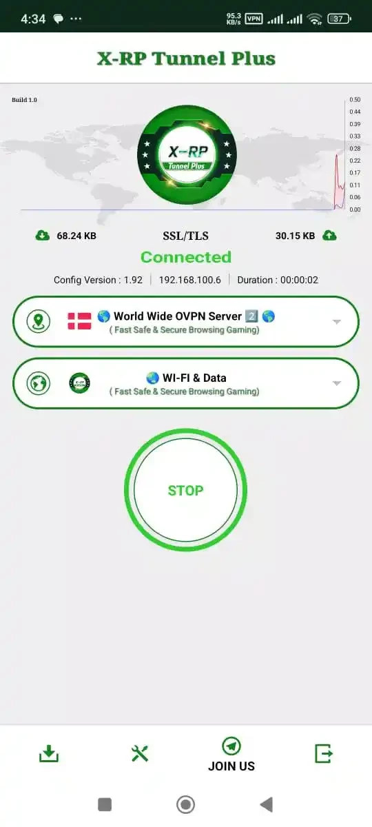 يوفر التطبيق اتصالاً قوياً وسريعاً، مما يضمن الاتصال بالخوادم في جميع أنحاء العالم. يتميز بسهولة الإعداد دون الحاجة إلى أي إعدادات معقدة. ما عليك سوى تثبيته والانتقال إلى الشاشة الرئيسية، حيث لا توجد أي عملية تسجيل. العملية بأكملها مؤتمتة، ولا حاجة لأي إعدادات يدوية، وستجد واجهة مستخدم أنيقة مع مؤشرات حالة واضحة.